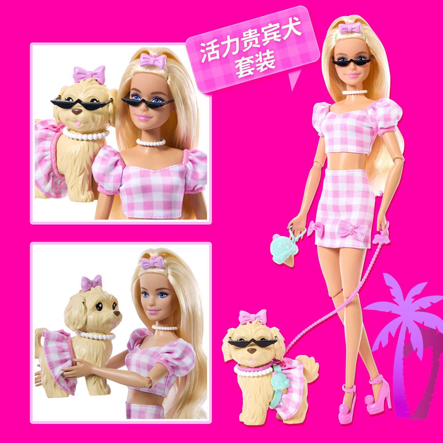 送礼玩具 芭比娃娃Barbie绒绒好时光系列之活力贵宾犬女孩时尚由