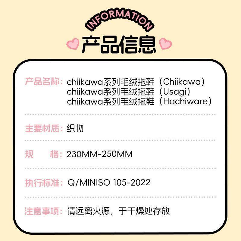 为您提供商品保暖棉拖包裹居家拖外穿可爱 MINISO名创优品chiikawa系列毛绒拖鞋的详细介绍,