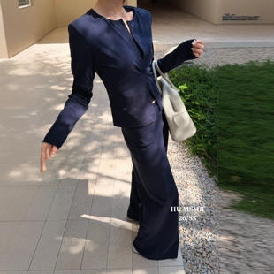 设计感屁帘拼接百搭高腰阔腿休闲裤 女韩版 拖地裤 MSMR春季 新款由
