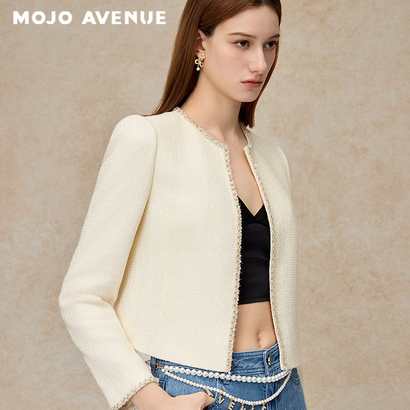2026法式 静奢千金小香风短外套正肩圆领白色上衣 MOJO夏新品 朗姿由