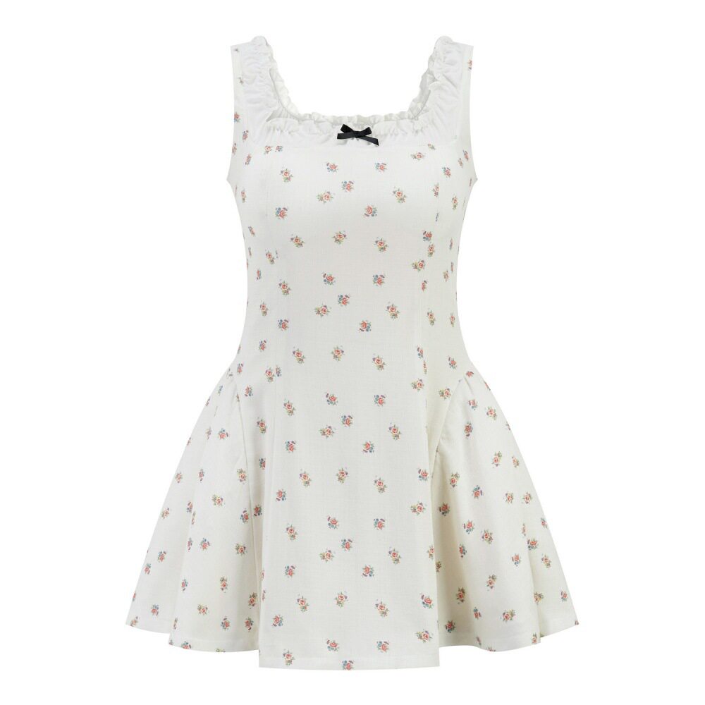 白水女 花边方领绣花吊带裙女早春收腰白月光连衣裙 淡香小白花由