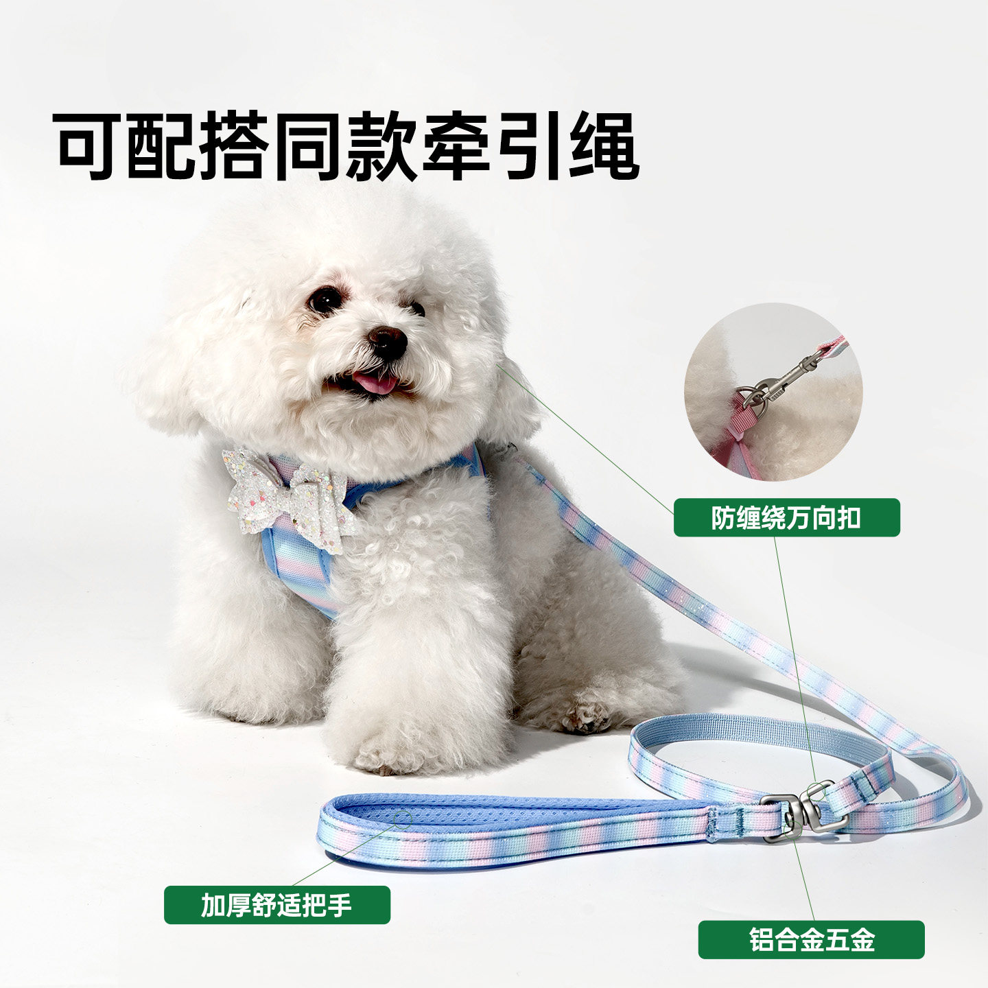 遛狗绳幼犬比熊 Touchdog它它编织小狗狗胸背牵引绳中小型犬胸背式