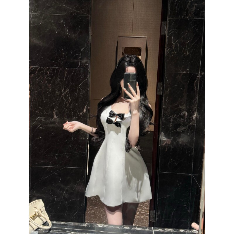 法式 背心连衣裙设计感镂空蝴蝶结A字短裙 纯欲风气质性感辣妹无袖
