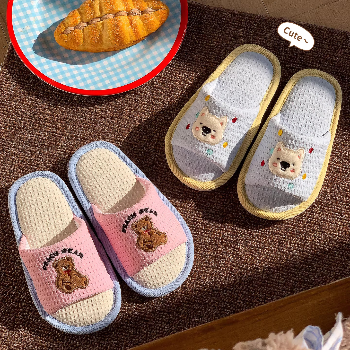 女春秋款 吸汗脚亚麻卡通可爱办公室内居家地板 通用棉麻布拖鞋 四季