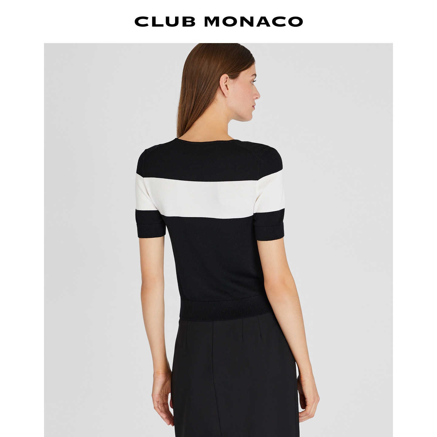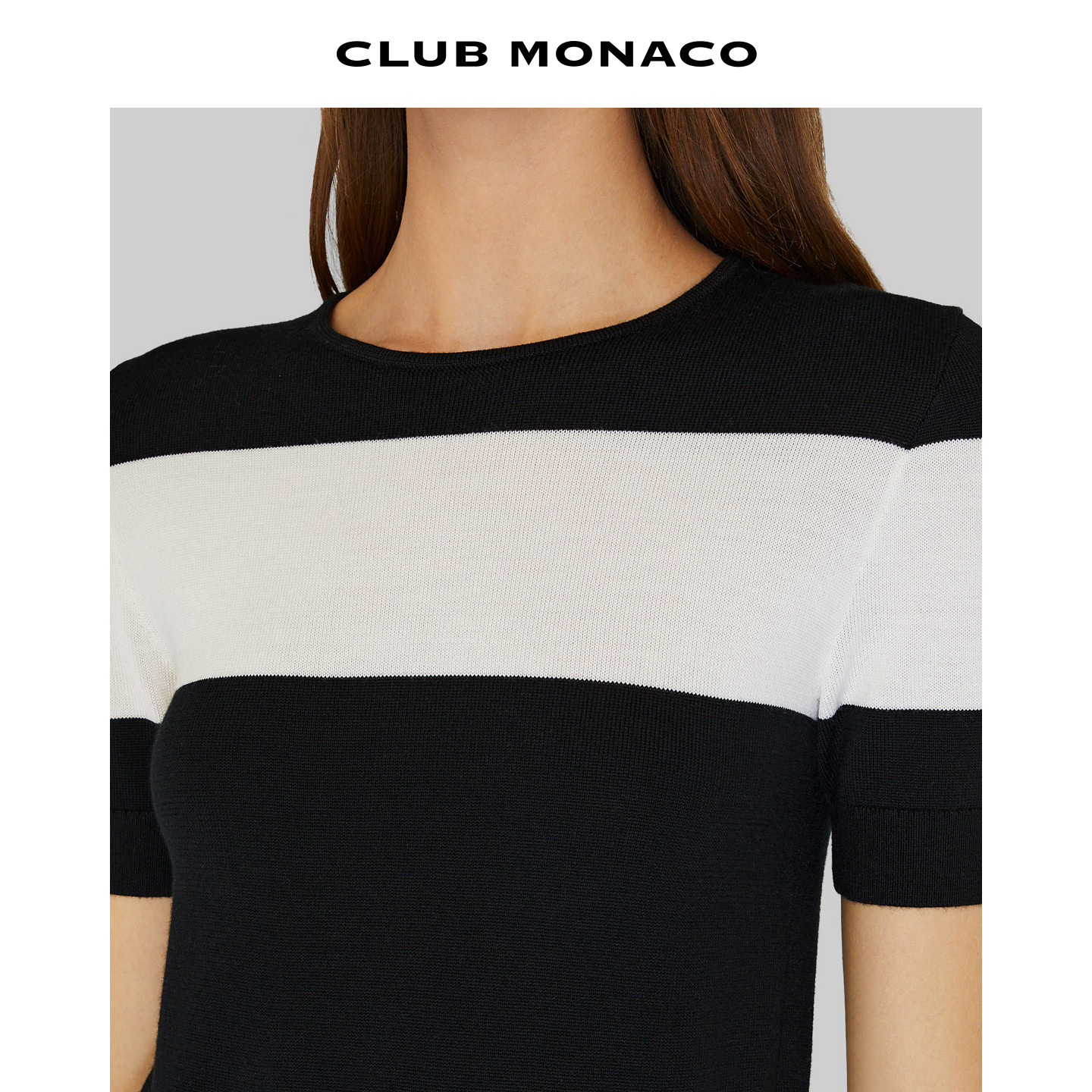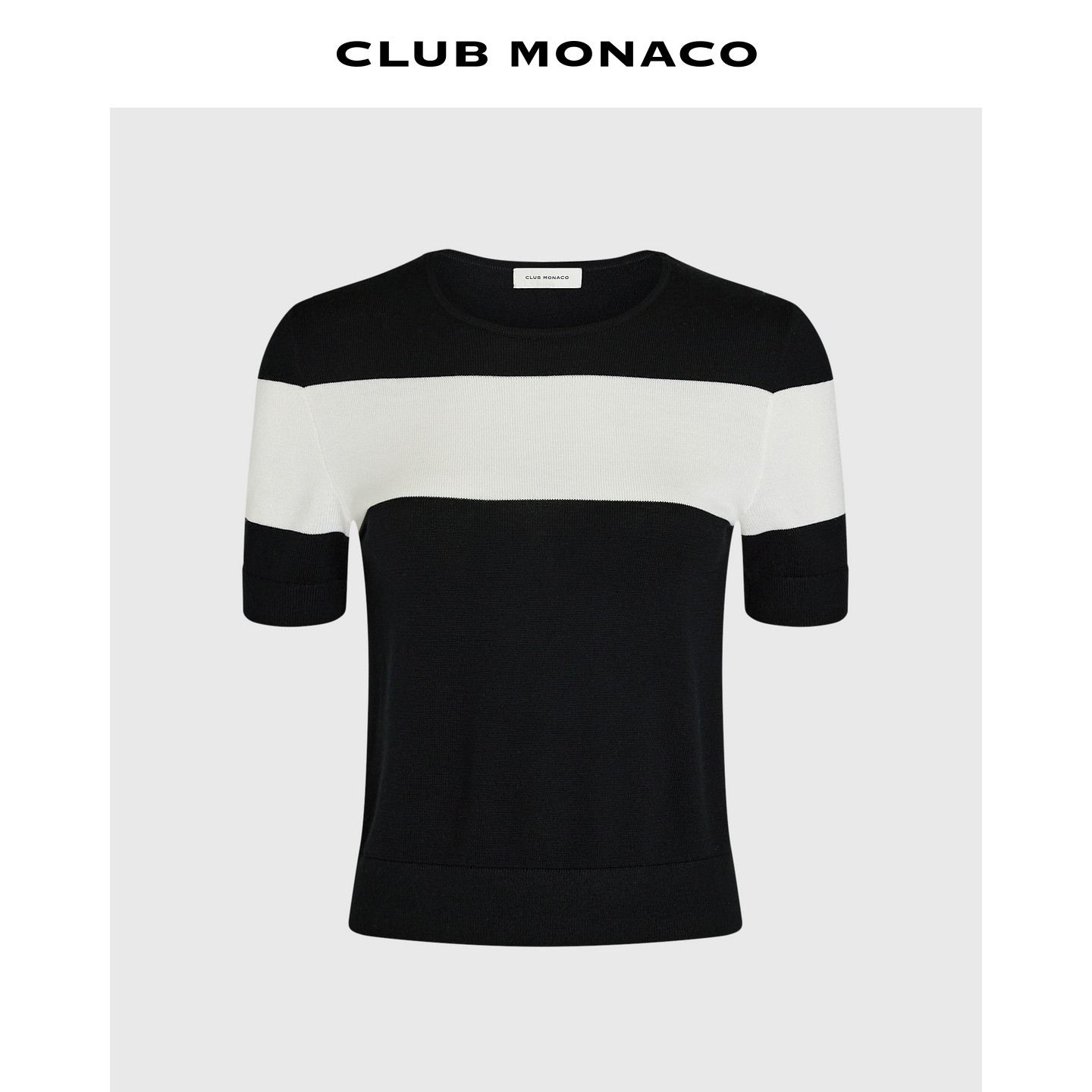 为您提供商品CLUB 针织T恤 MONACO女士羊毛桑蚕丝混纺拼色短袖的详细介绍,