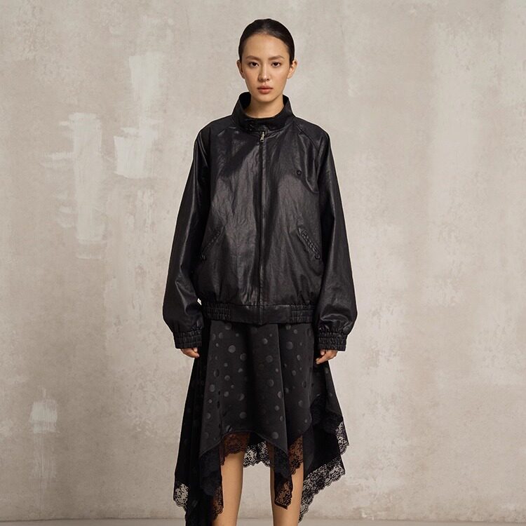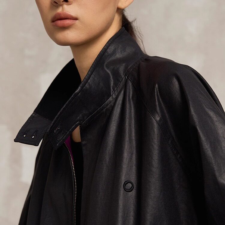 为您提供商品SoloForTwo 立领轻量皮衣 25秋冬新款 宽松外套 减负油纸皮黑夹克的详细介绍,