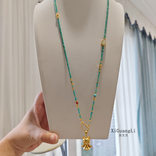 新中式 毛衣链 绿松石项链黄金吊坠百搭挂链万能链可拆卸小米珠长款由