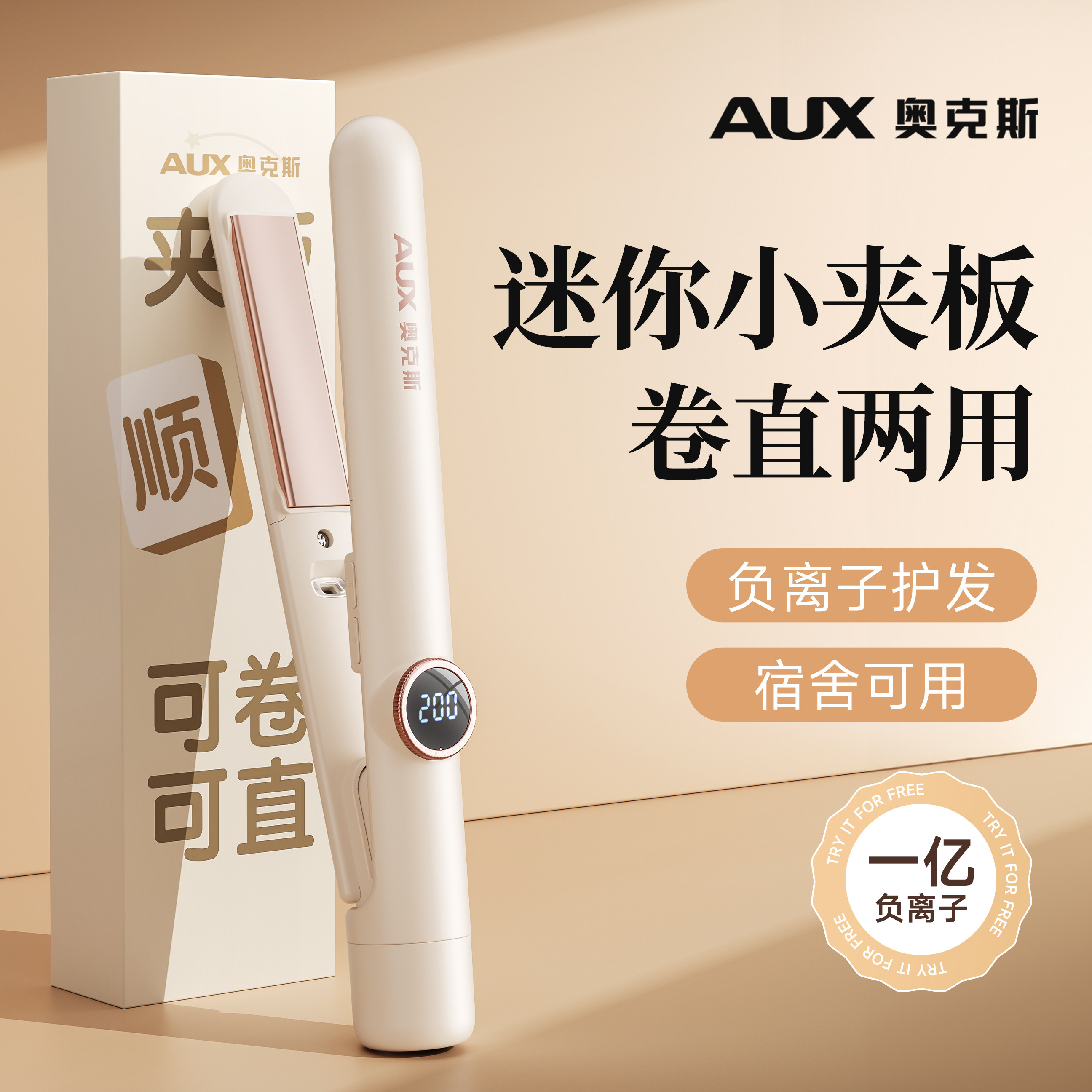 刘海拉直板夹直发卷发两用 奥克斯小夹板迷你卷发棒小型mini便携式