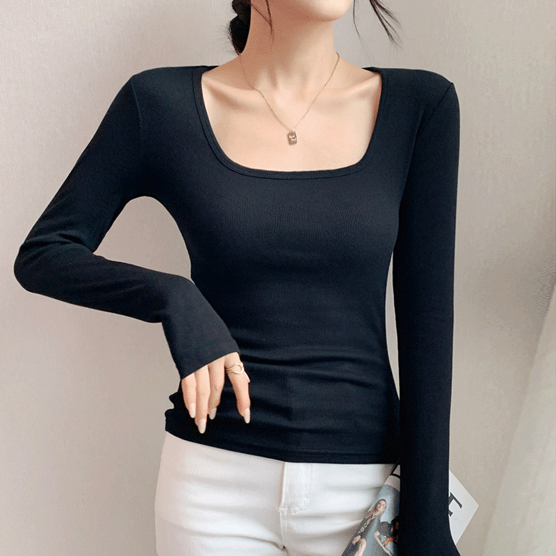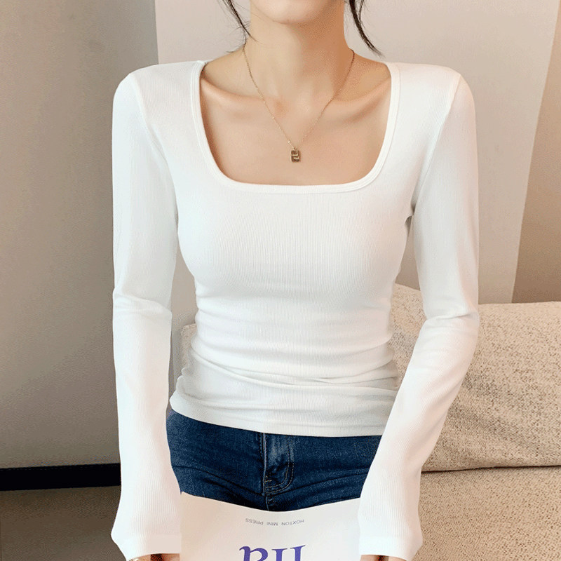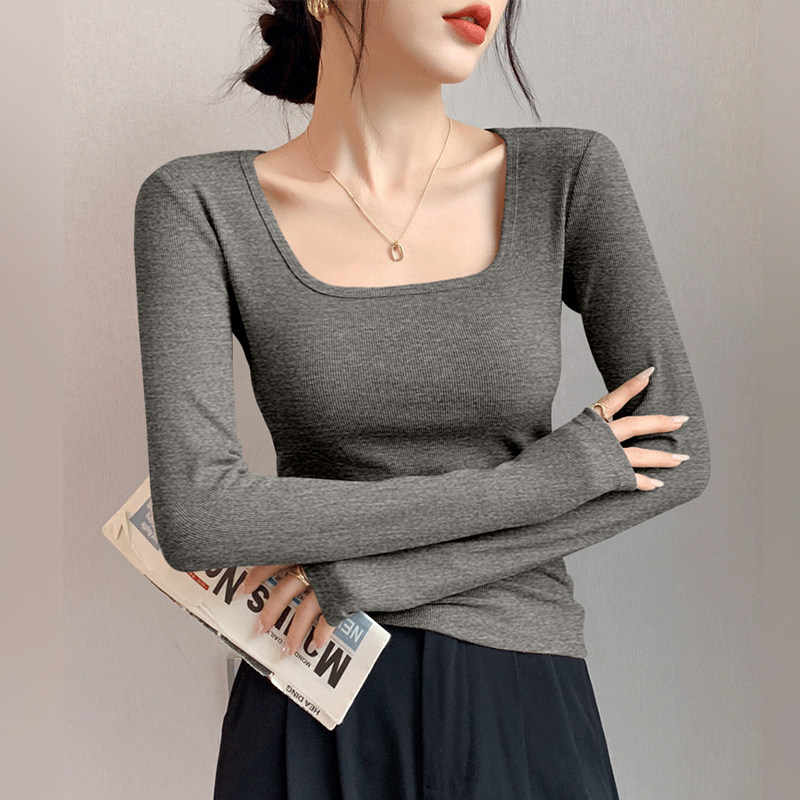 T恤女修身 2026春装 新款 方领露锁骨长袖 显瘦莫代尔内搭洋气打底衫