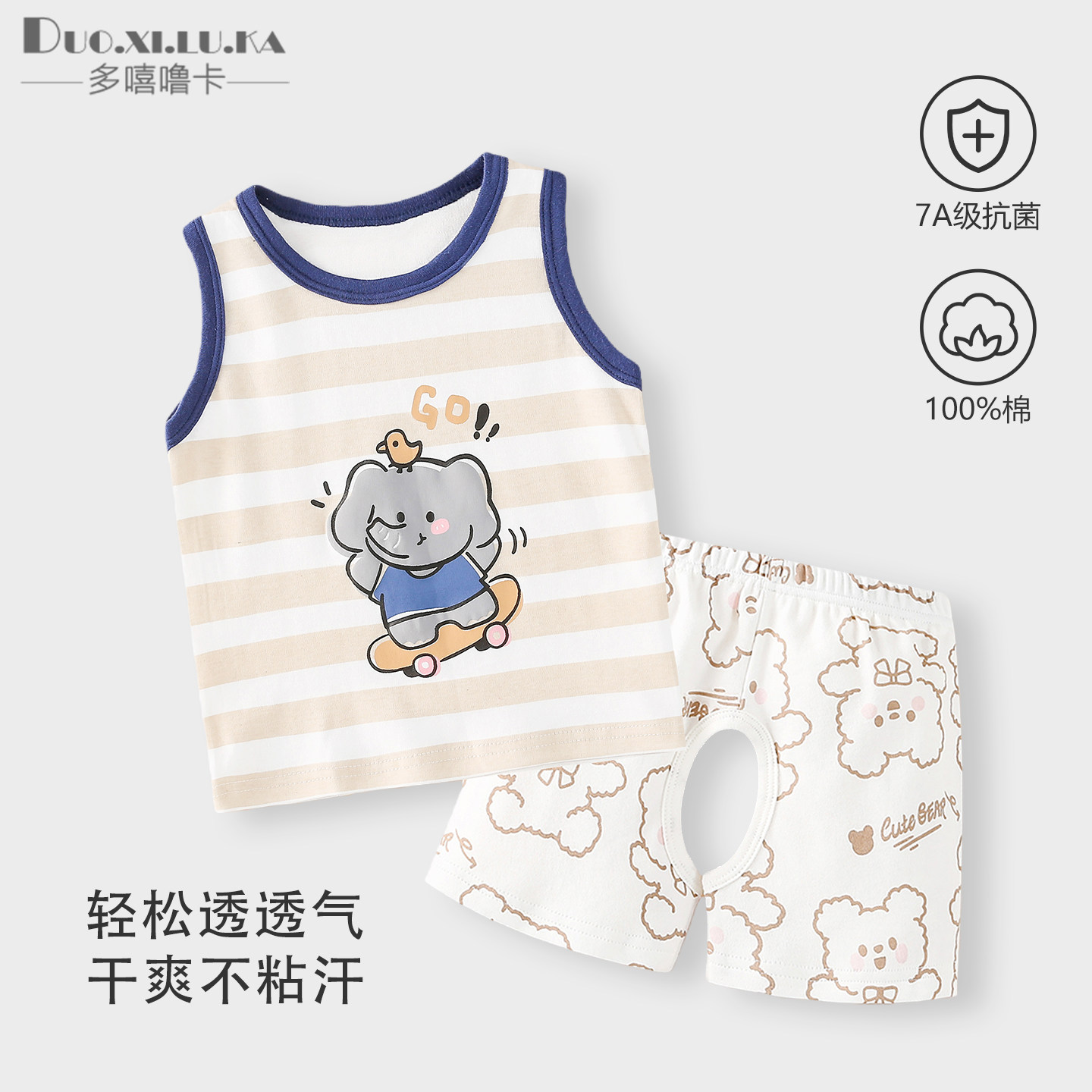 夏季 儿童套装 男女宝宝背心短裤 两件套婴儿外出纯棉衣服洋气 薄款由