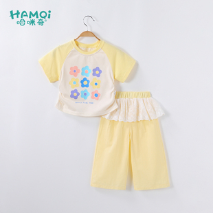 子两件套小儿童夏季 童装 衣服 洋气甜美上衣裤 宝宝新款 女童短袖 套装