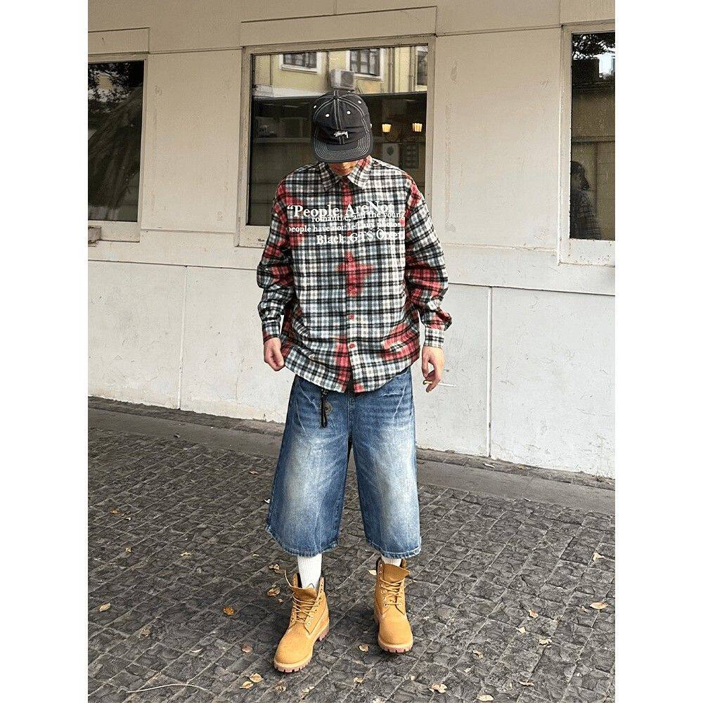为您提供商品复古冰蓝闪电裂纹休闲宽松潮牌直筒七分裤 夏季 美式 新款 男 牛仔短裤的详细介绍,