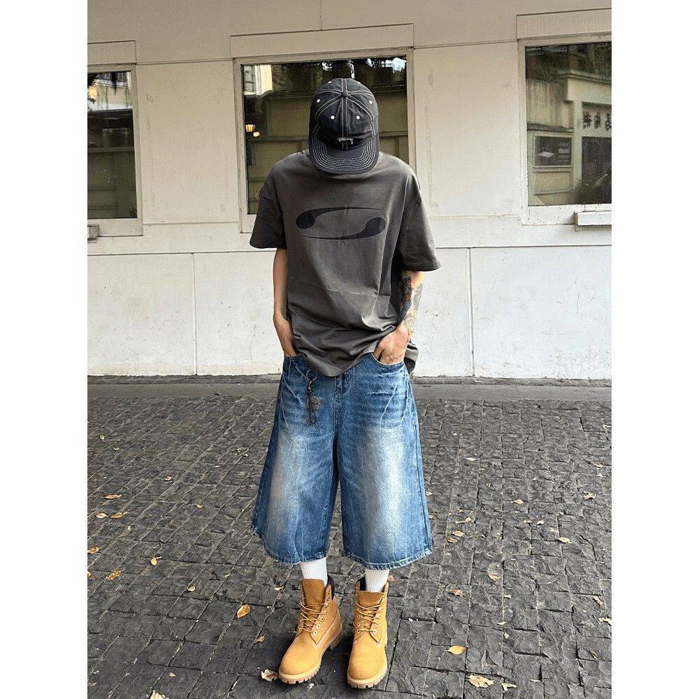 ⭐小红书推荐⭐牛仔短裤 复古冰蓝闪电裂纹休闲宽松潮牌直筒七分裤 男 新款 夏季 美式,所属牛仔裤分类,由淘宝网挑选推荐!小红书抖音网红同款!哪里有卖牛仔短裤 复古冰蓝闪电裂纹休闲宽松潮牌直筒七分裤 男 新款 夏季 美式和多少钱质量怎么样✅。