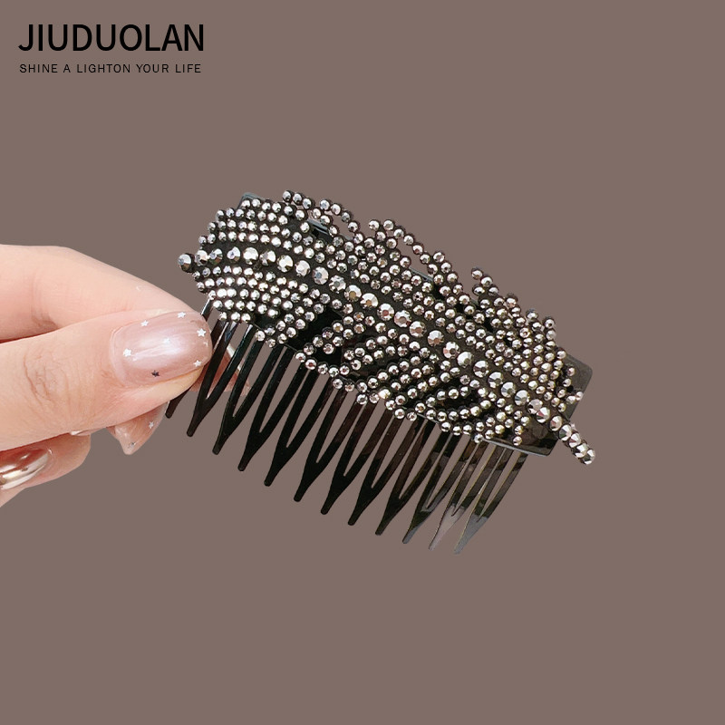 高颅顶侧边刘海夹发钗发卡头饰 轻奢闪钻树叶发梳倒插梳女2026新款