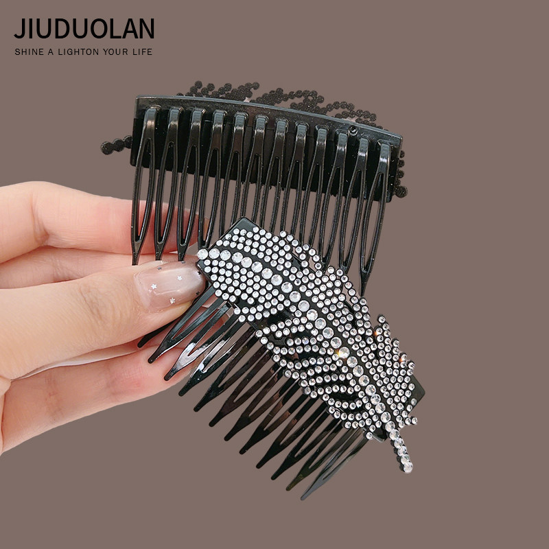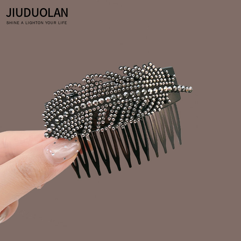 高颅顶侧边刘海夹发钗发卡头饰 轻奢闪钻树叶发梳倒插梳女2026新款由