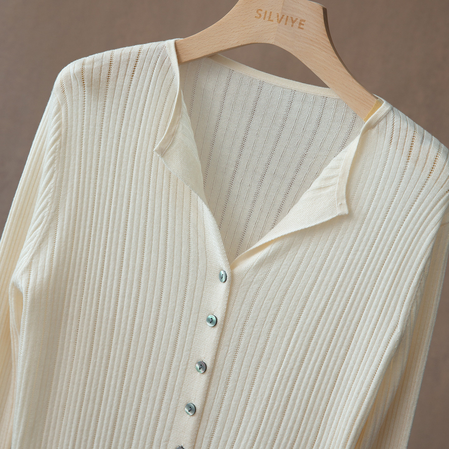 00上新 V领桑蚕丝羊毛镂空针织开衫 4月4日10