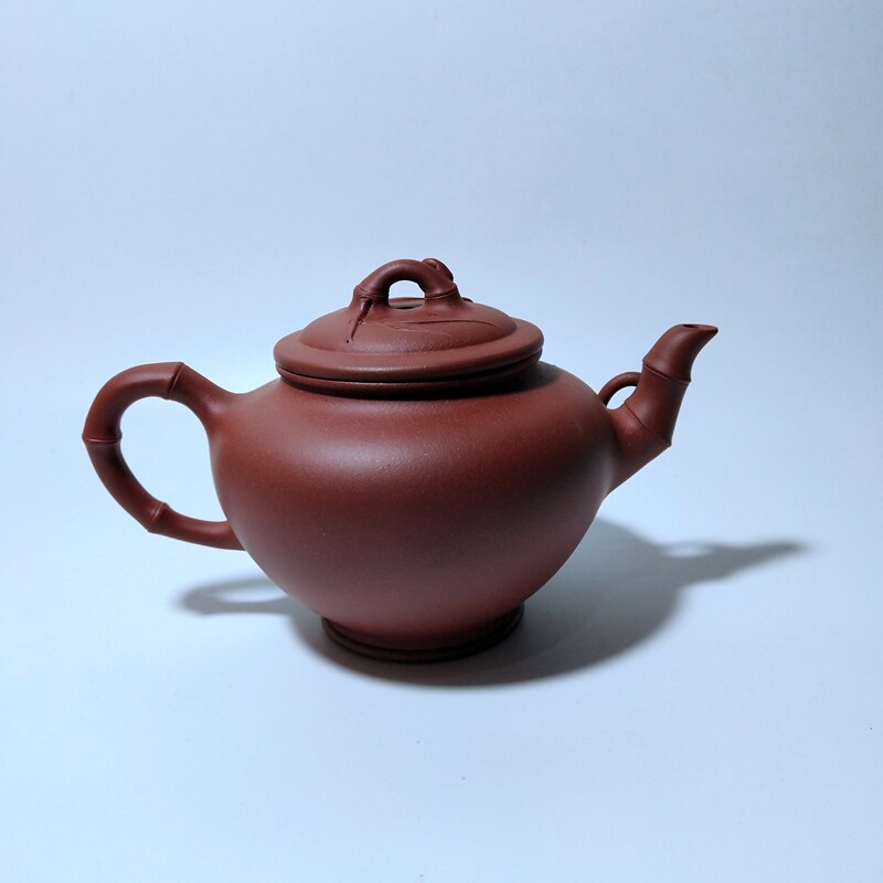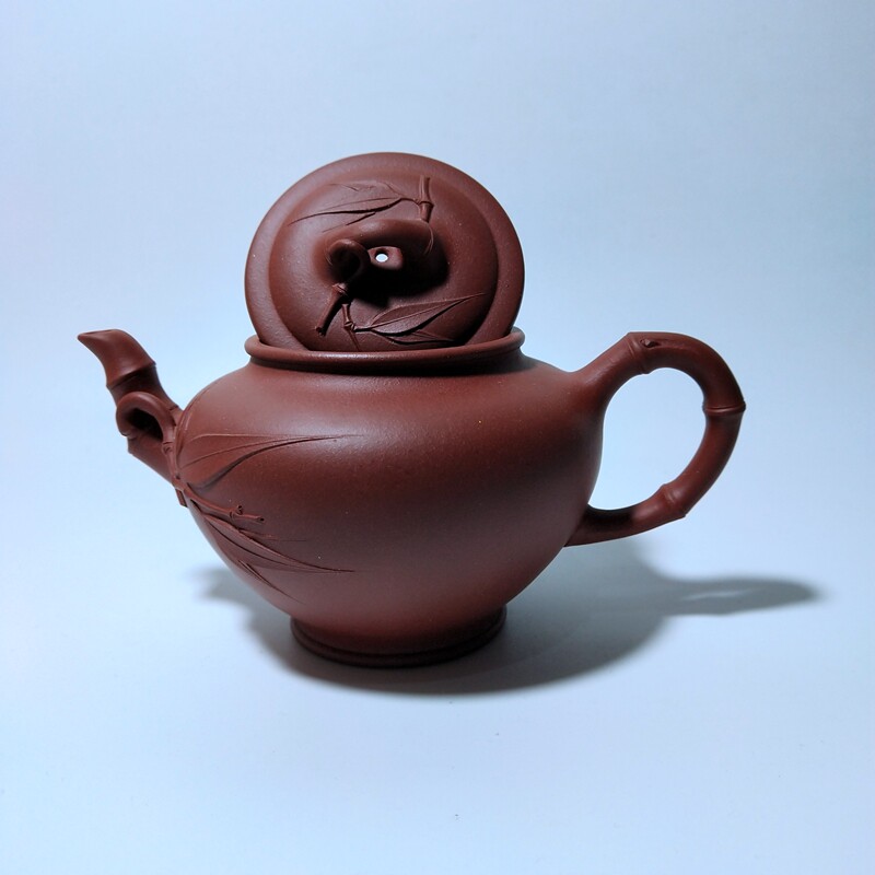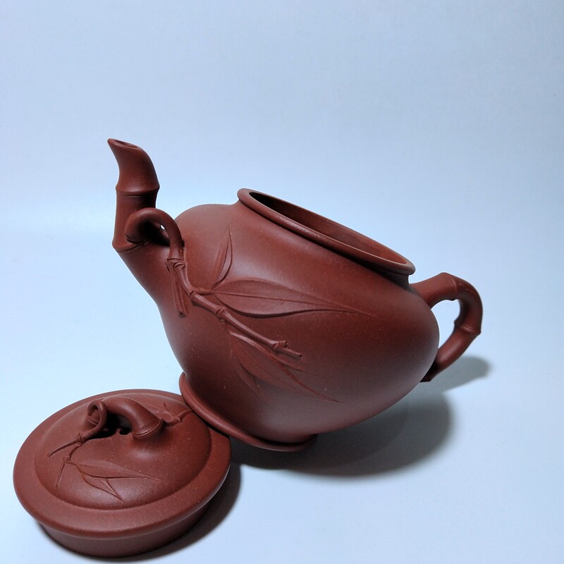 260cc笑樱竹节壶纯手工贴竹叶原矿清水泥 宜兴紫砂壶研高葛岳纯款由