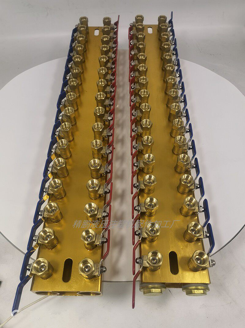 为您提供商品注塑机分水排金色平面双排配3分纯铜球阀进水口1寸螺纹模具分流器的详细介绍,