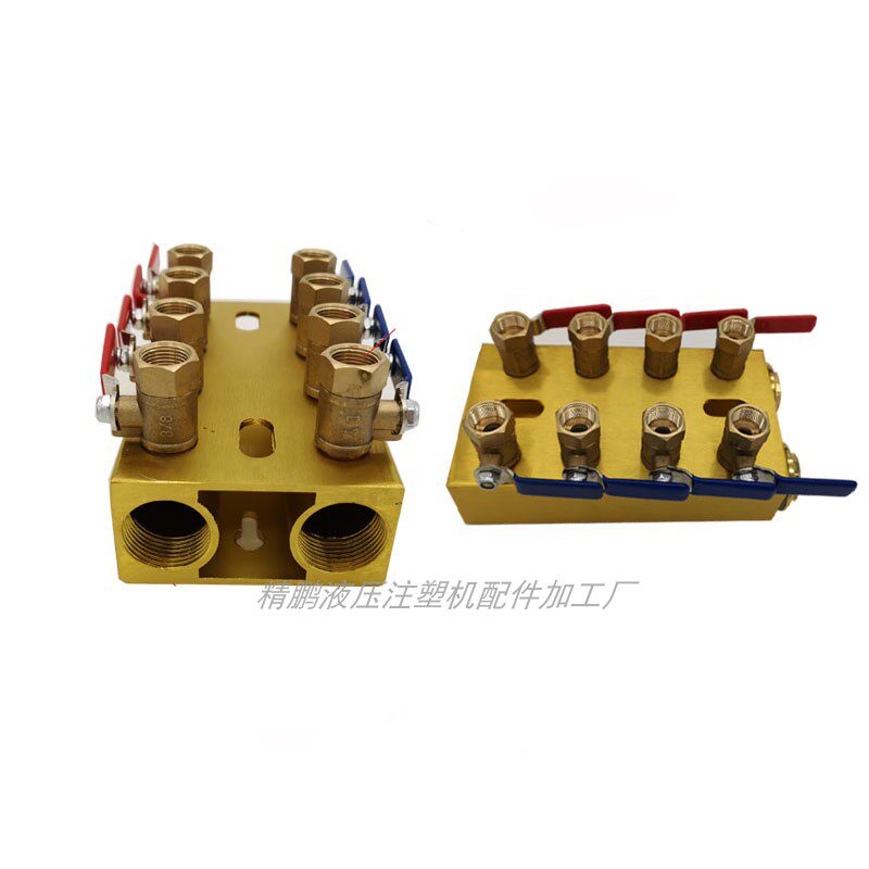 注塑机分水排金色平面双排配3分纯铜球阀进水口1寸螺纹模具分流器由