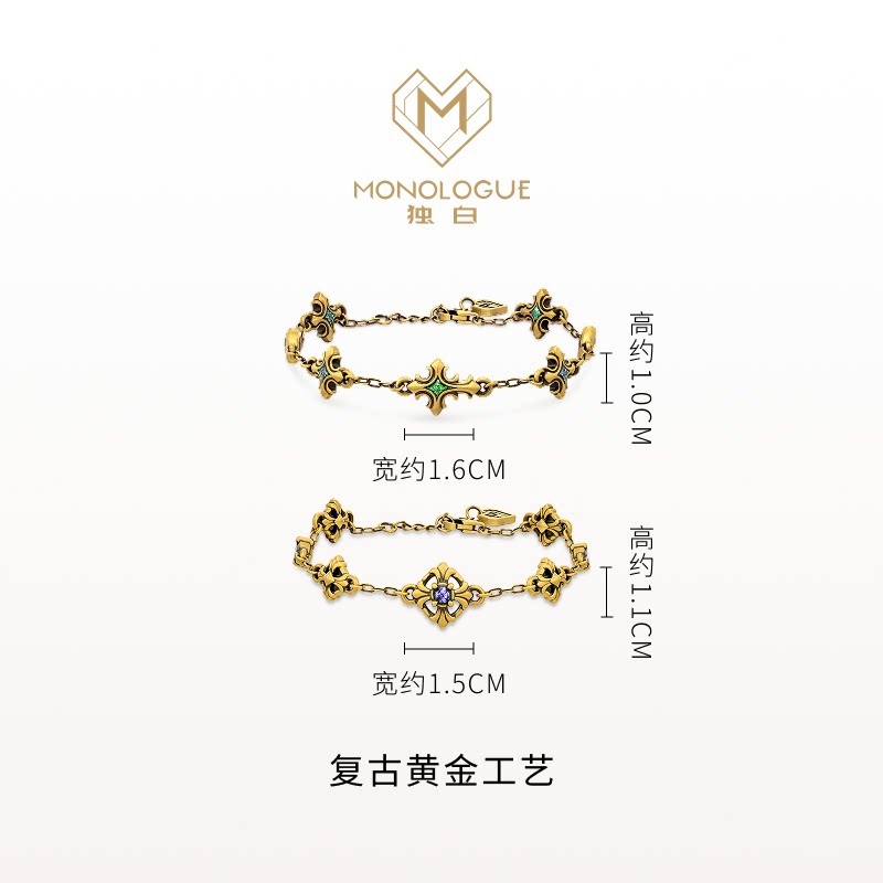 手链生日礼物 MONOLOGUE独白链金主义复古黄金鎏彩鸢尾花多款