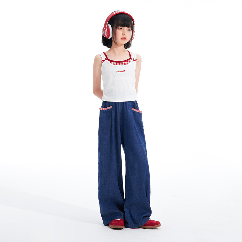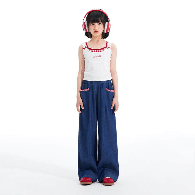 植木女童吊带2026夏季 中大童假两件叠穿修身 背心儿童背心童装 新款