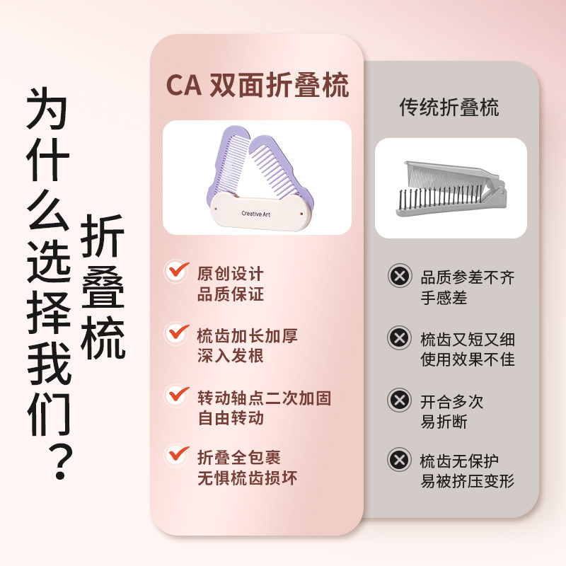 为您提供商品CA小梳子随身便携女士口袋刘海梳儿童女孩不伤头发宽密细齿折叠梳的详细介绍,