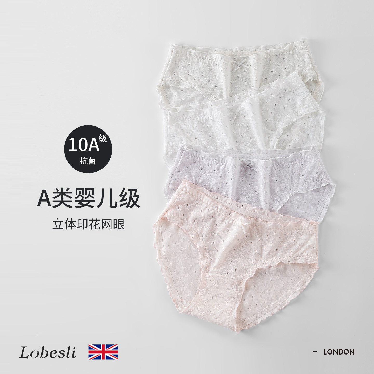 透气中腰蕾丝三角短裤 女生a类纯棉抗菌裆冰丝薄款 英国lobesli内裤