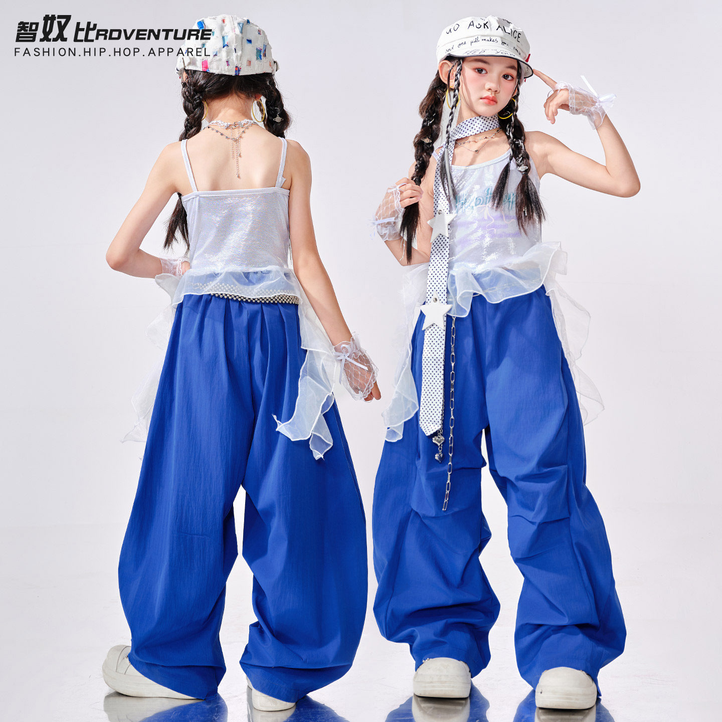 儿童爵士舞服装 舞蹈演出服 jazz女团露脐走秀潮酷时髦女童街舞套装由