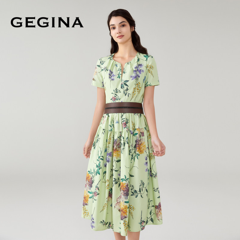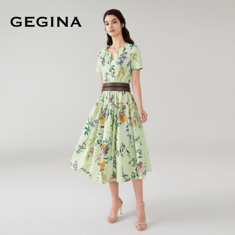 为您提供商品GEGINA吉吉娜春夏商场同款 V领印花连衣裙收腰气质感裙子 棉的详细介绍,