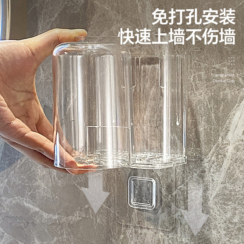 卫生间刷牙杯家庭电动牙膏漱口杯2023 牙刷架子置物架免打孔壁挂式