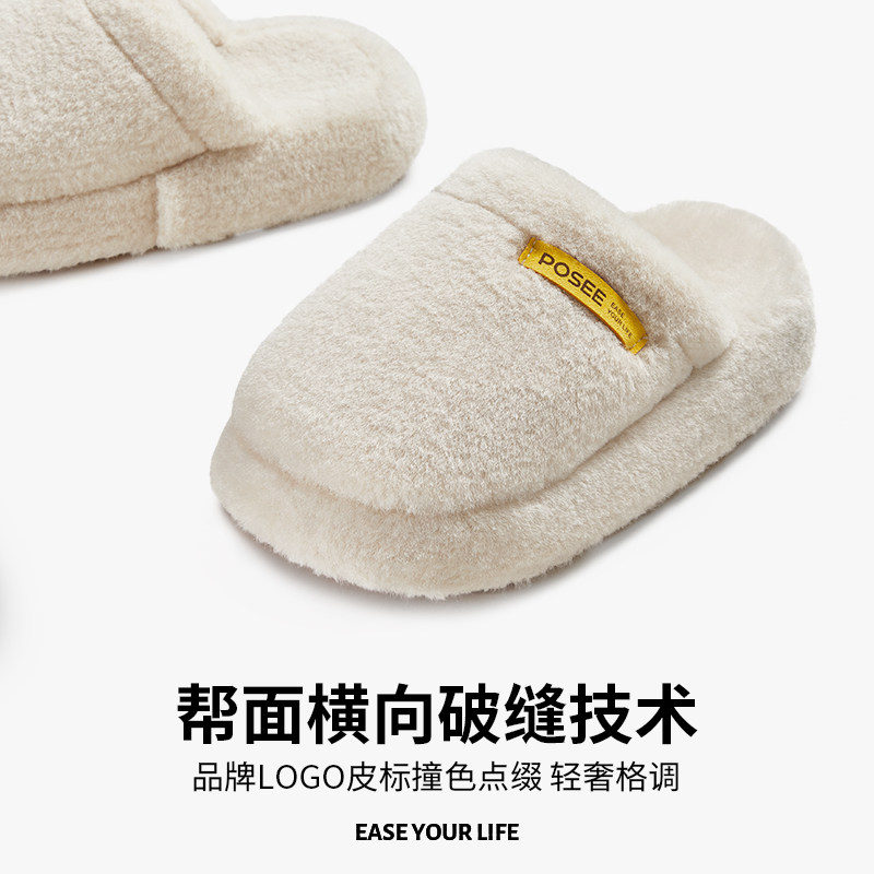 舒芙蕾可外穿秋冬厚底防滑保暖居家室内毛毛绒女高级感 朴西棉拖鞋