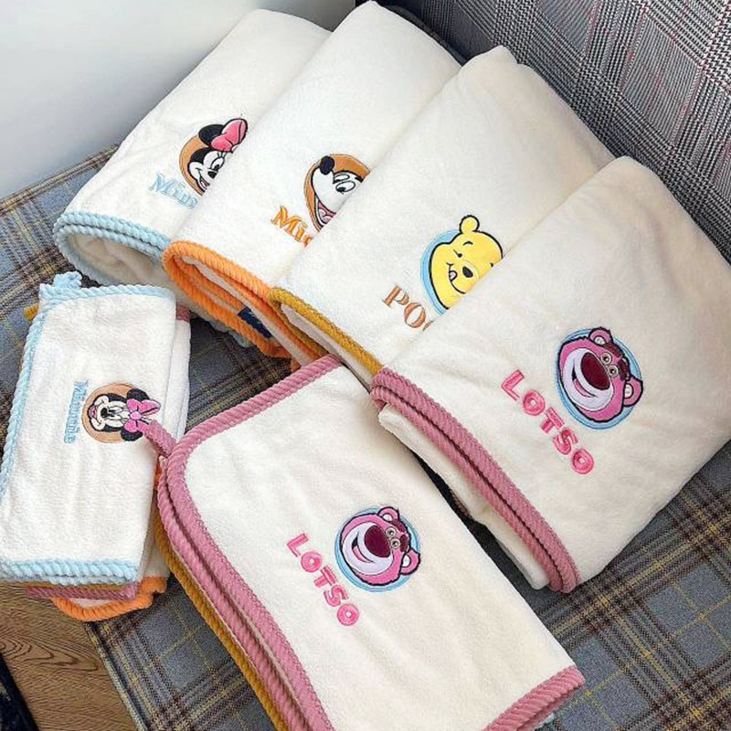 卡哇伊毛巾 刺绣柔软珊瑚绒宝宝方巾三件套 儿童速干毛巾浴巾套装由