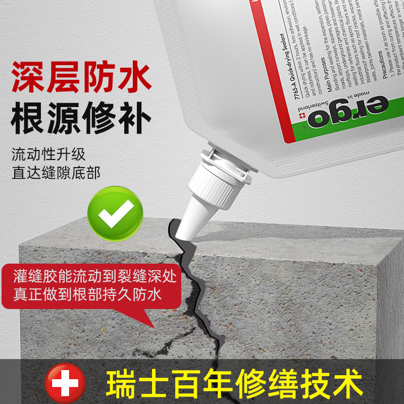 瑞士品牌速干灌缝胶防水胶补漏裂缝渗水水泥地面修补填缝剂灌封剂由