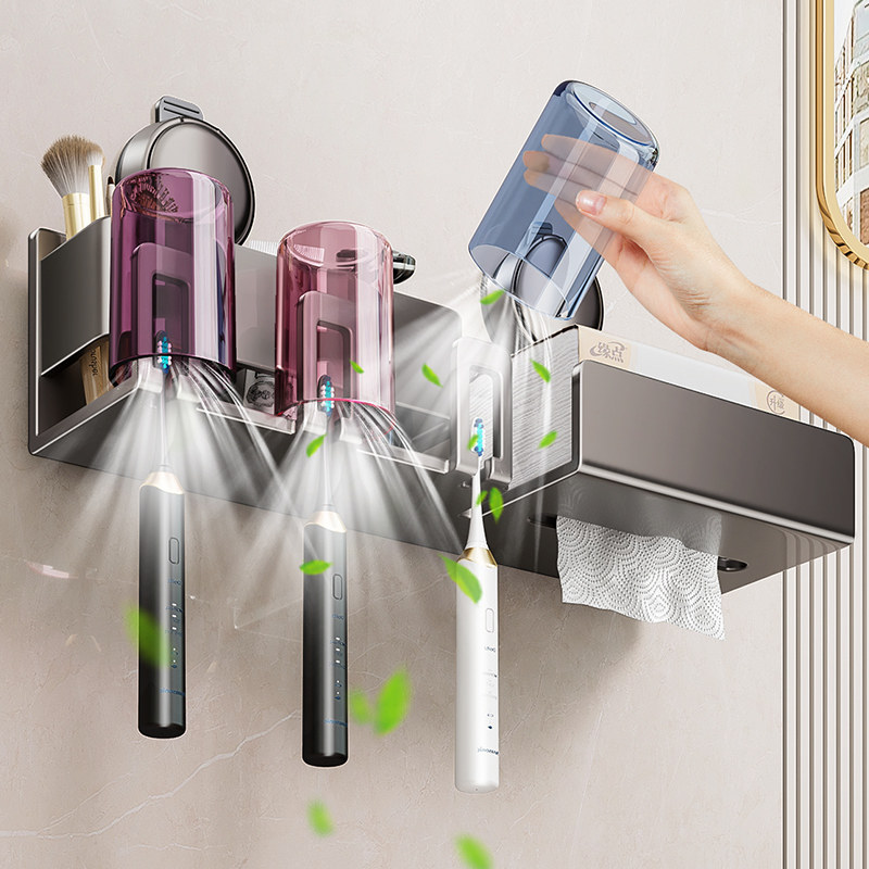 免打孔卫生间牙具座牙膏收纳浴室 牙刷牙杯壁挂置物架电动牙刷套装