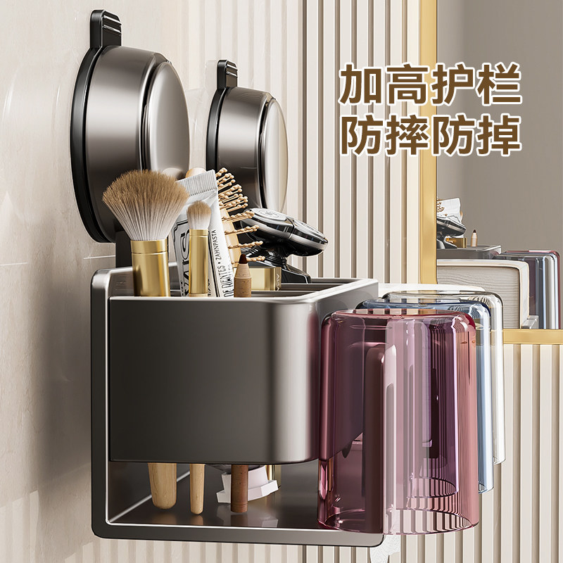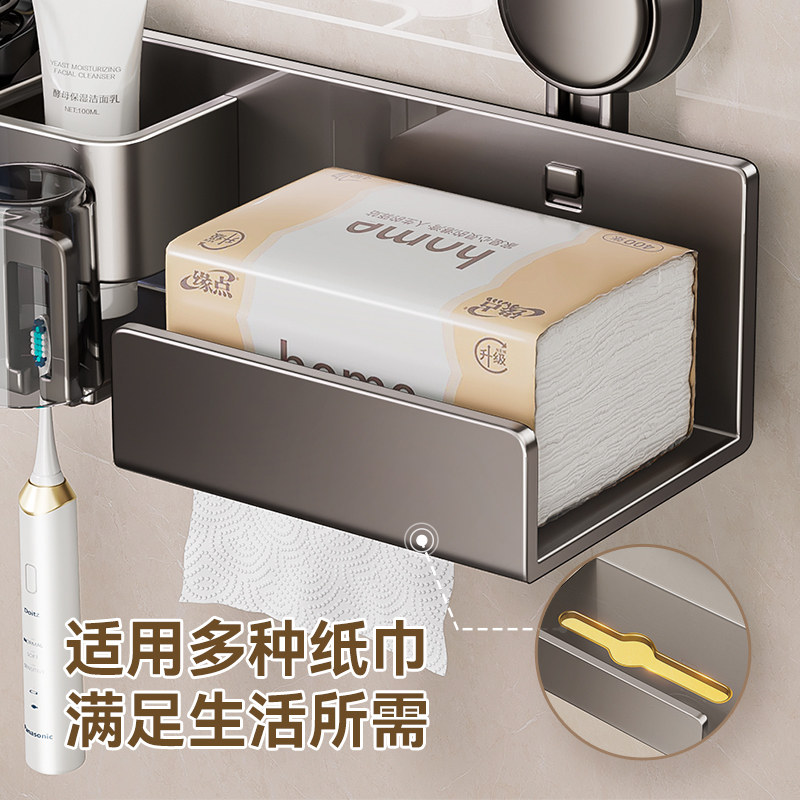 为您提供商品免打孔卫生间纸巾架一体牙杯漱口杯收纳挂架 吸盘牙刷置物架壁挂式的详细介绍,