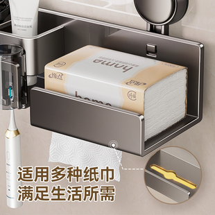 免打孔卫生间纸巾架一体牙杯漱口杯收纳挂架 吸盘牙刷置物架壁挂式由