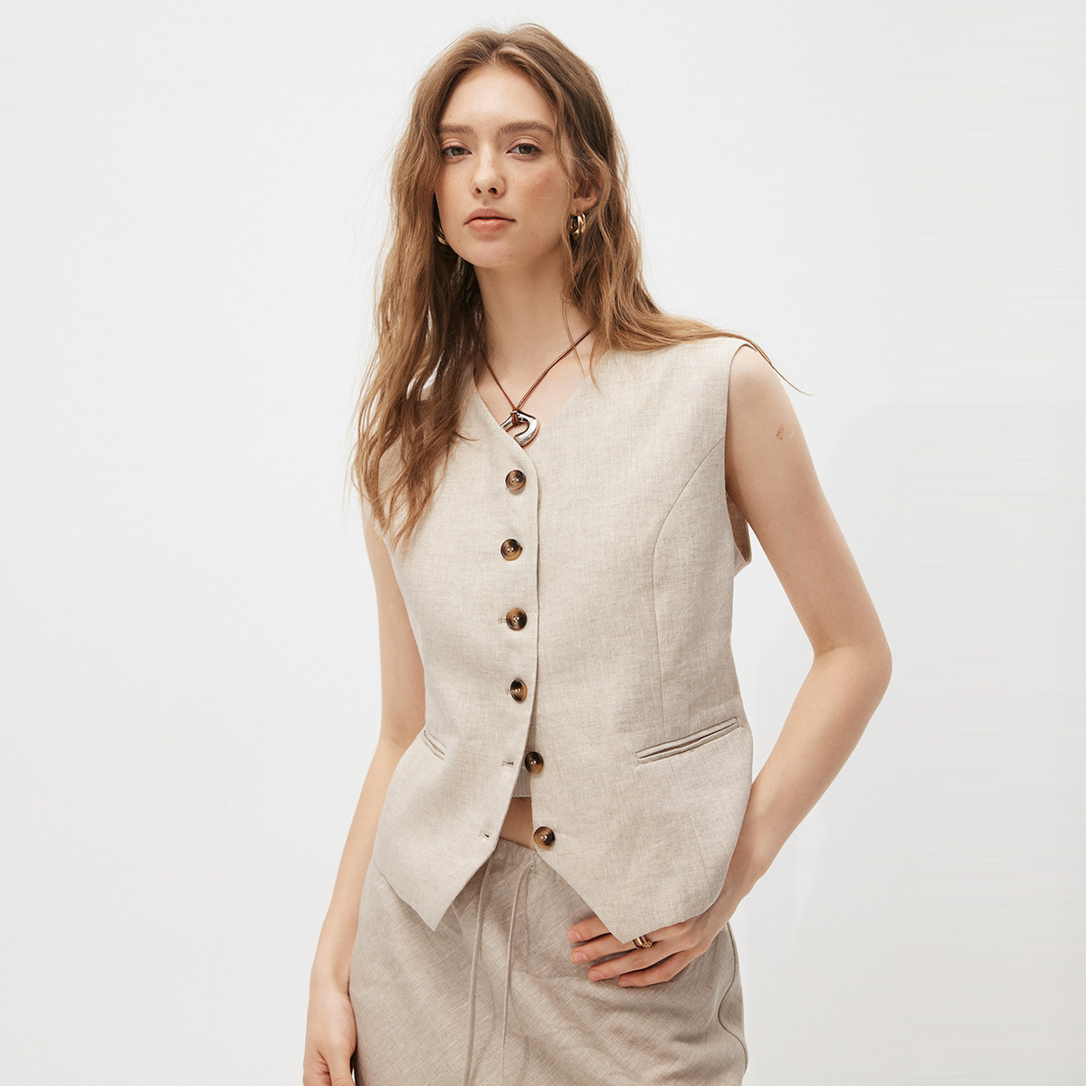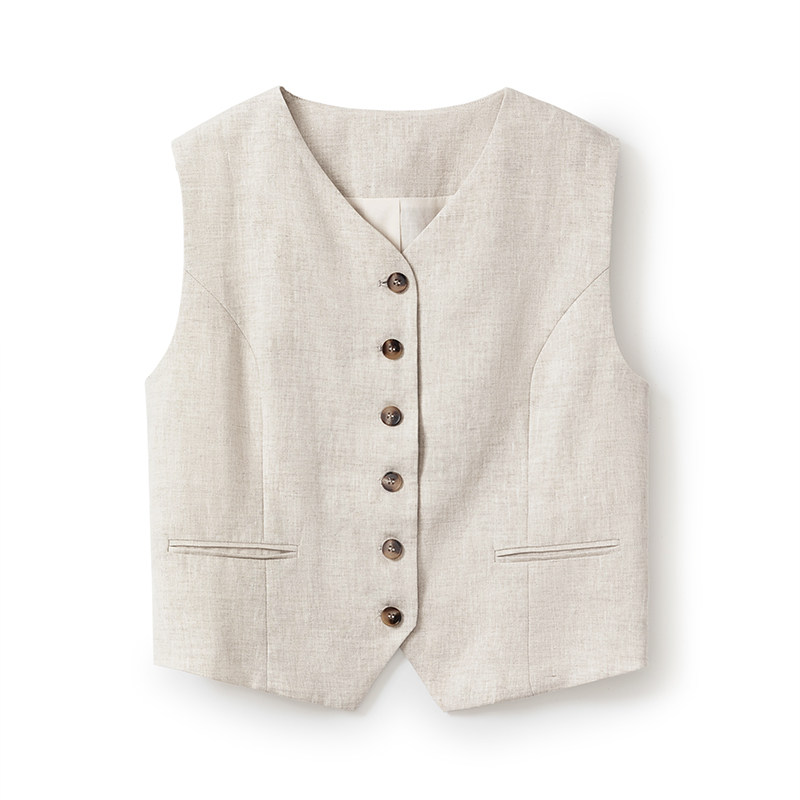 半裙 女 现货 马甲 夏季 透气亚麻套装 长裤 老钱风100%亚麻西装 短裤由