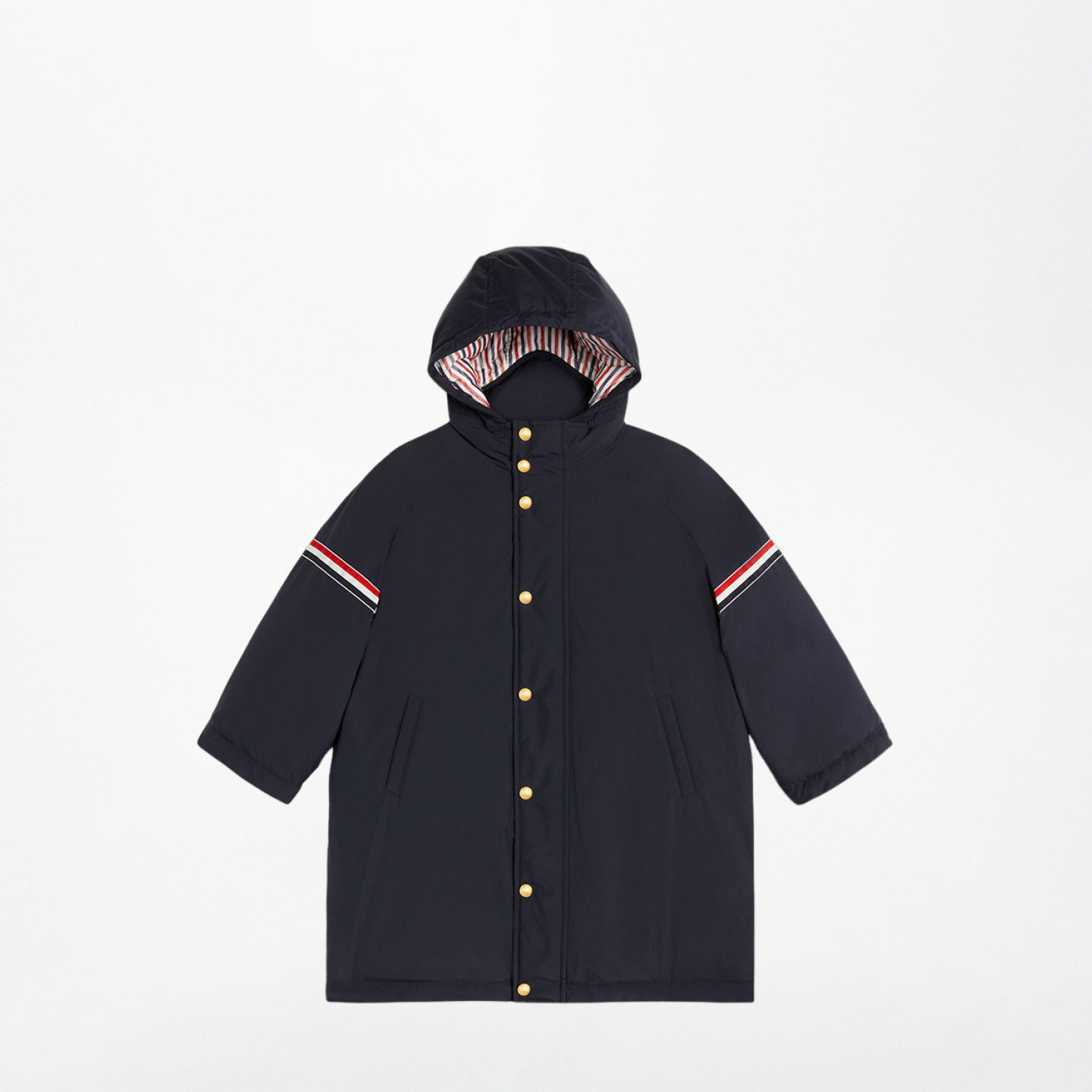 THOM BROWNE 儿童条纹连帽派克大衣外套 3期免息由