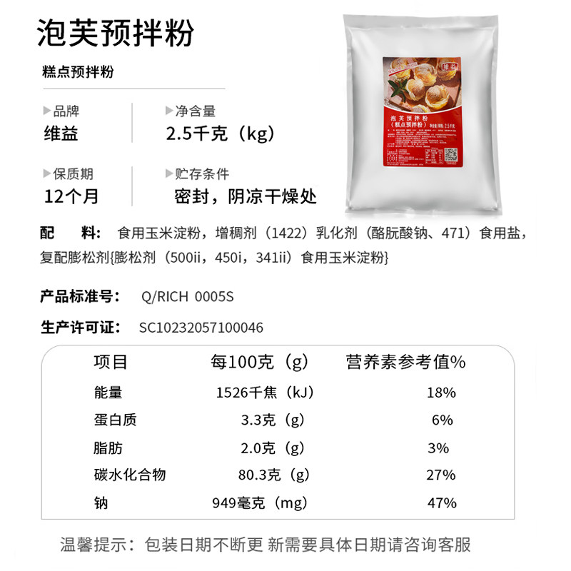 ⭐小红书推荐⭐维益泡芙预拌粉糕点蛋糕西点脆皮泡芙商用烘培原料2.5kg 6包整箱,所属预拌粉分类,由淘宝网挑选推荐!小红书抖音网红同款!哪里有卖维益泡芙预拌粉糕点蛋糕西点脆皮泡芙商用烘培原料2.5kg 6包整箱和多少钱质量怎么样✅。