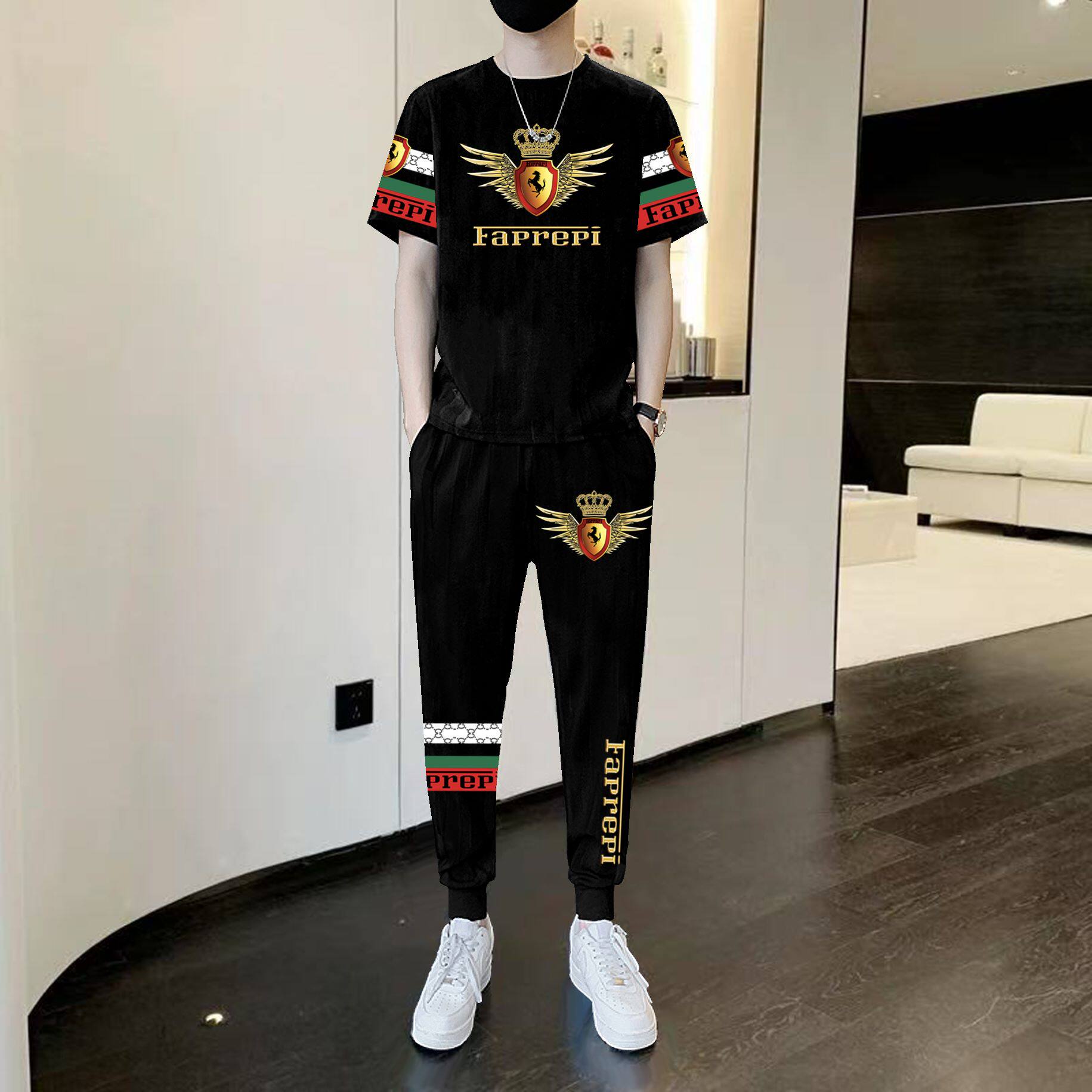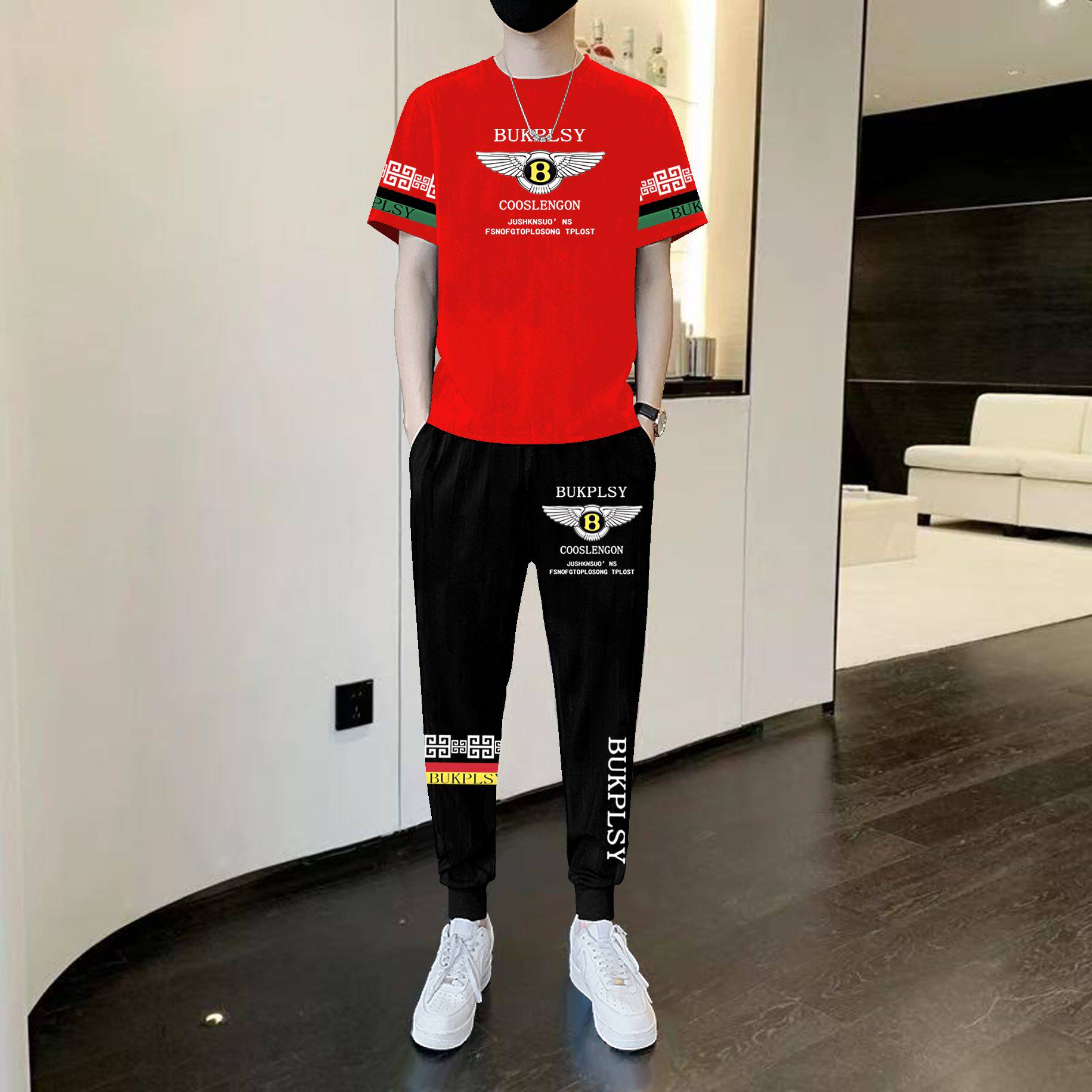 为您提供商品时尚 新款 男夏季 潮流两件套 T恤长裤 搭配男装 印花短袖 休闲运动套装的详细介绍,