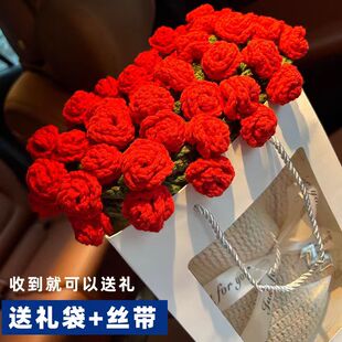 玫瑰花束成品毛毯编织手工毯子生日送女朋友新婚圣诞节实用礼物由