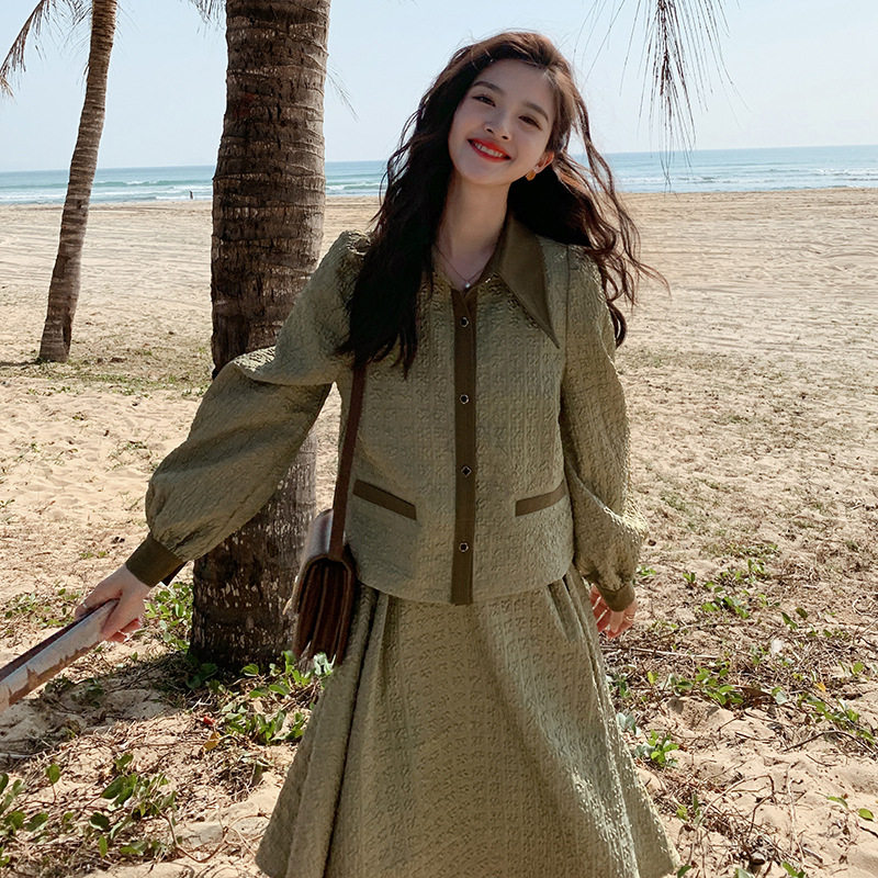 为您提供商品2021早秋时尚 女 设计感洋气短款 上衣半身裙两件套套 气质套装的详细介绍,