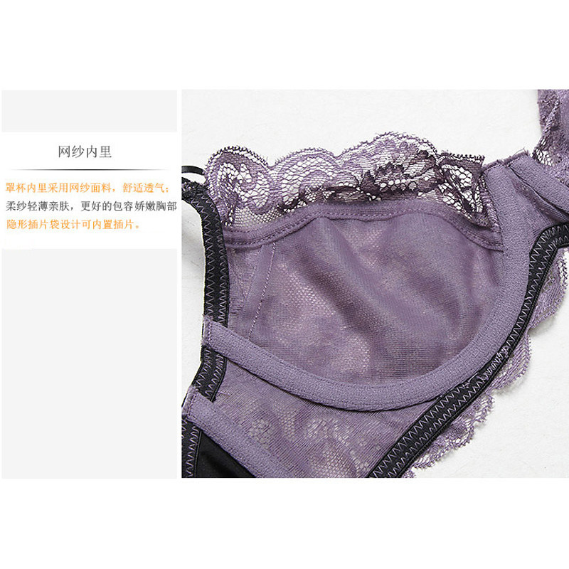 好奇蜜斯大胸显小胸内衣女性感夏薄防下垂法式 纯欲蕾丝文胸罩套装