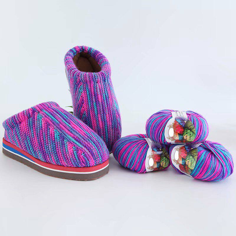 段染中粗腈纶毛线团手工编织diy勾针拖鞋 渐变色宝宝晴纶线 打棉鞋