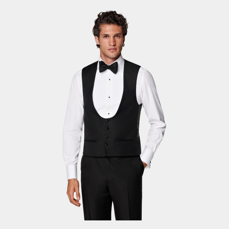 SUITSUPPLY黑色S110支羊毛男士 礼服背心马甲内搭 西装
