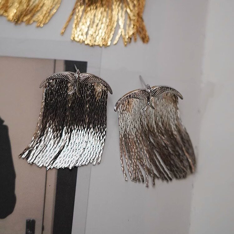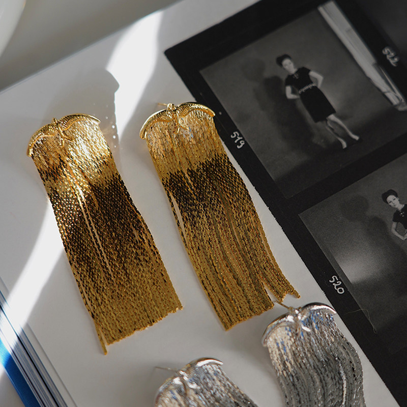 宋佳同款 耳环银色夸张金属耳饰耳坠 飞鸟流苏长款 耳边铛195新中式