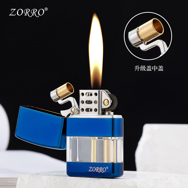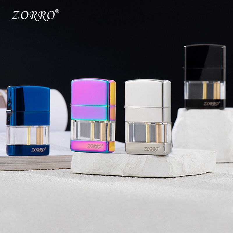 创意透明油仓点烟器送男友礼物 ZORRO佐罗煤油打火机防风耐用个性