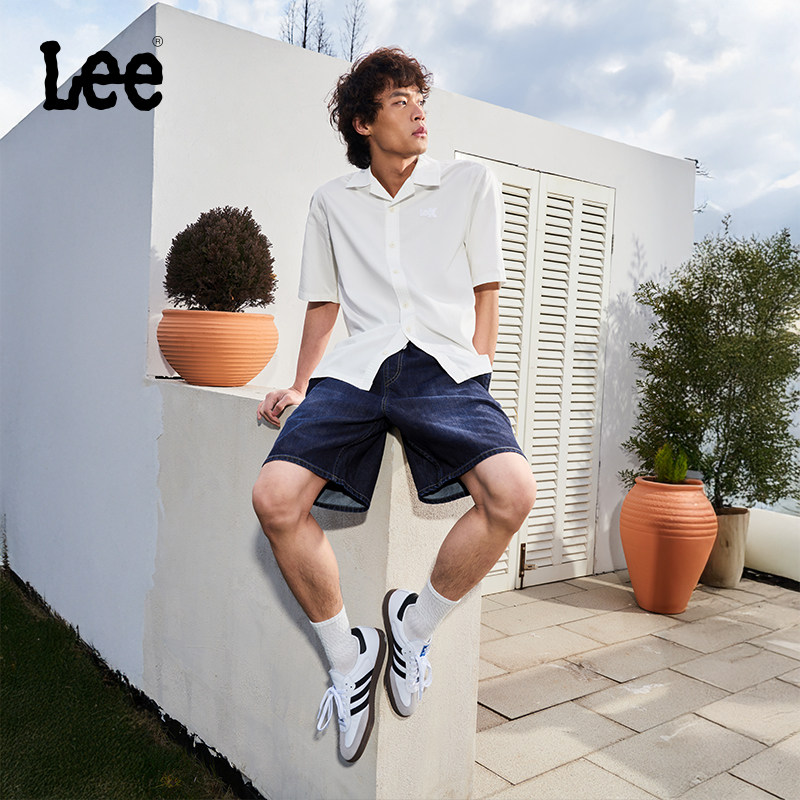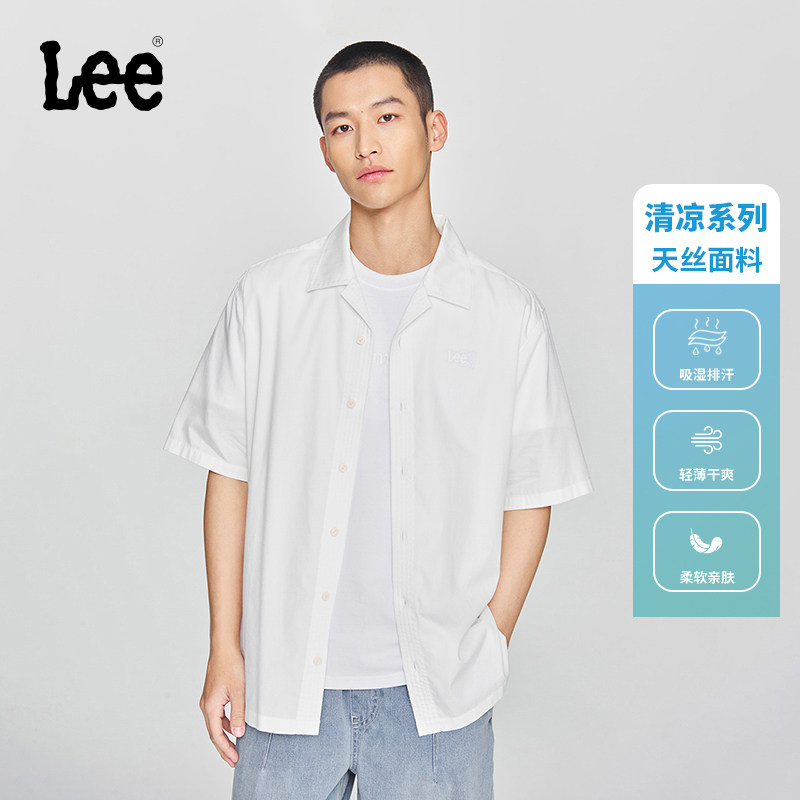 Lee宽松版 翻领Logo徽标印花天丝白色男短袖 衬衫 LMT009796207 经典由