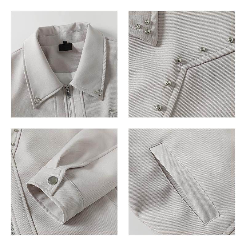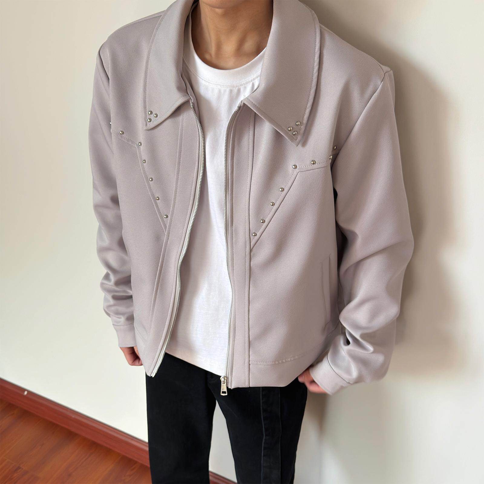 立体剪裁铆钉夹克cleanfit短宽显高翻领外套W411 布老哥Blog春季