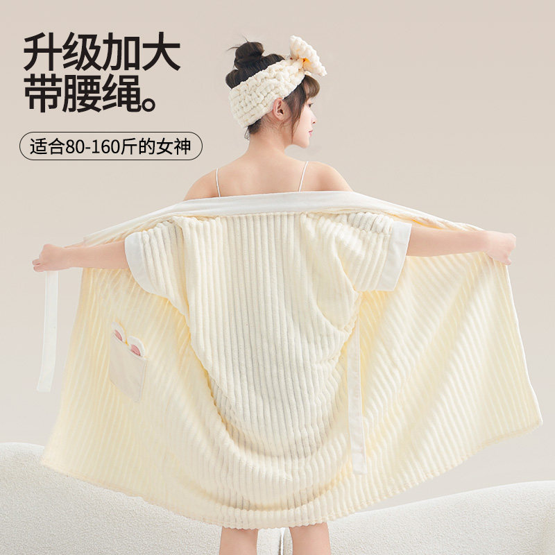秋冬浴袍可穿浴巾女家用珊瑚绒吸水柔软速干浴裙洗澡睡袍睡衣连帽